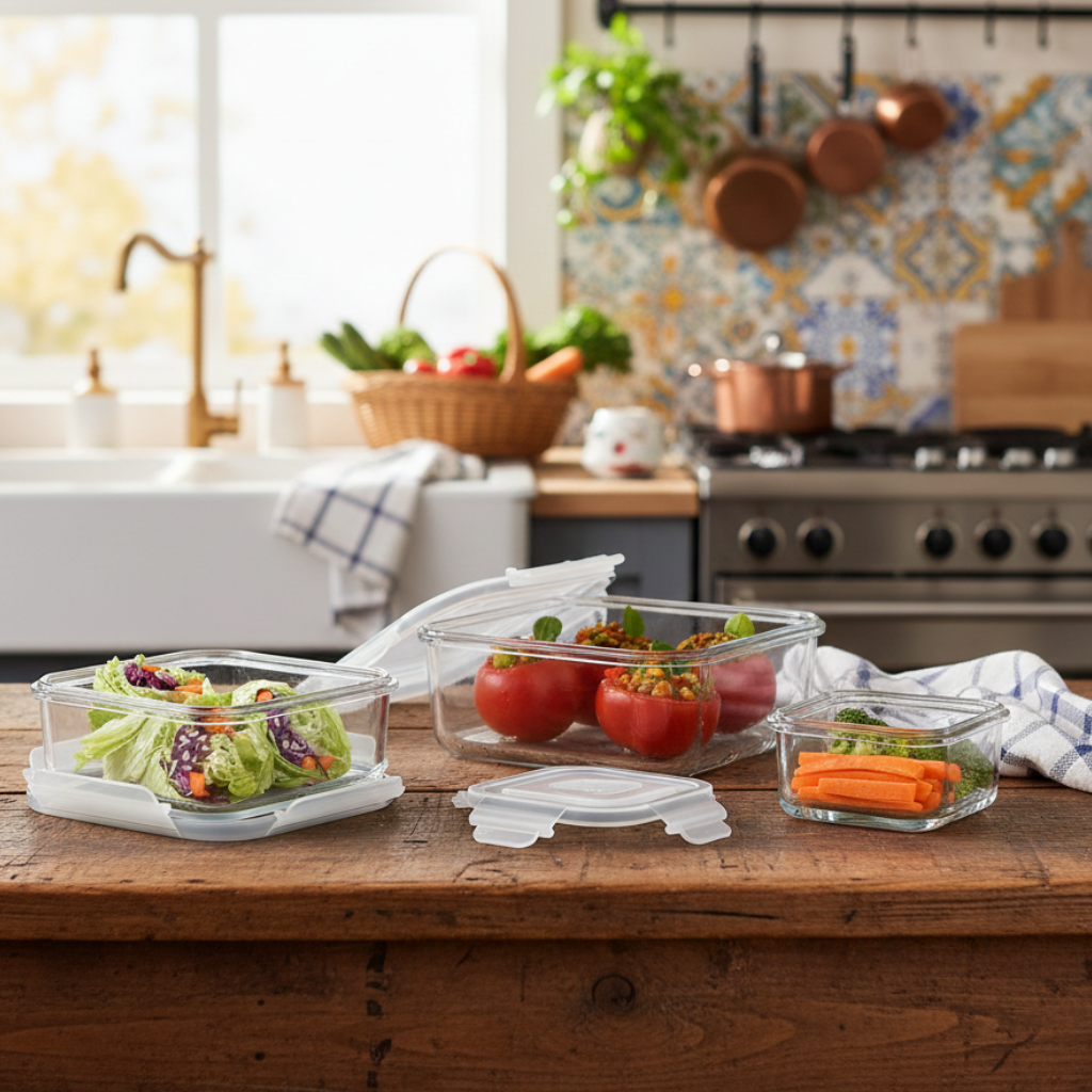 3‑Pcs Premium Square Glass Storage Set with Lids (2048) by Limon