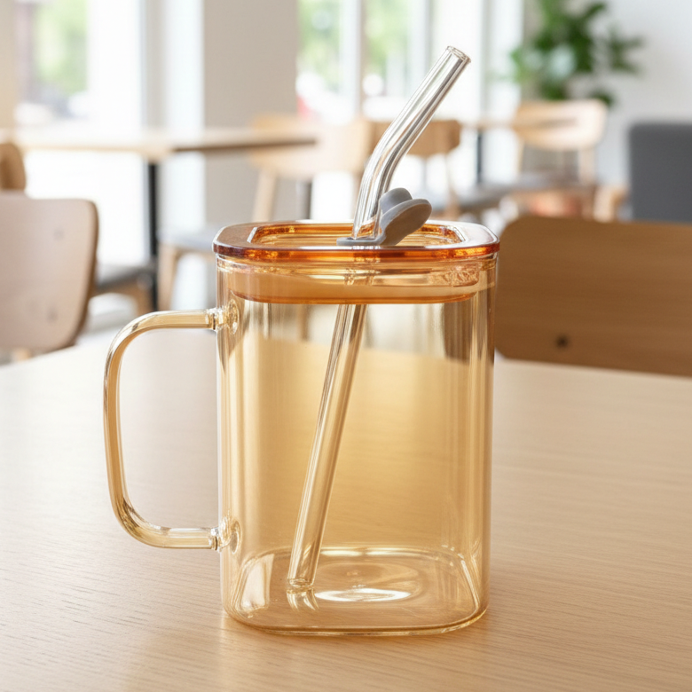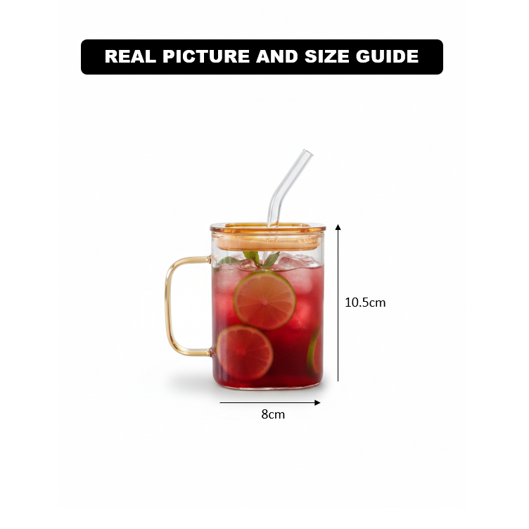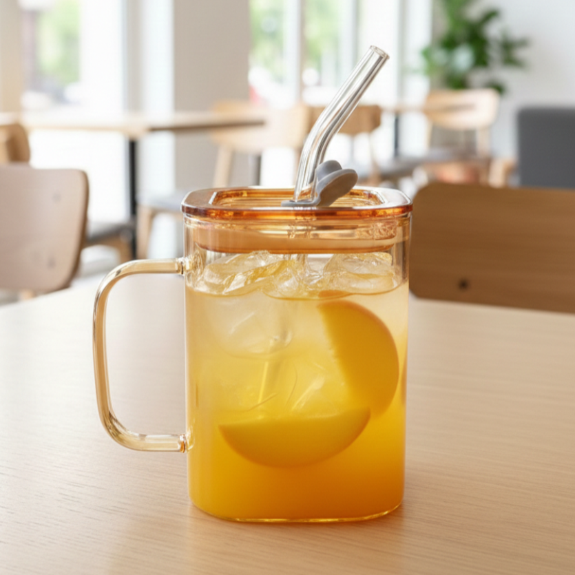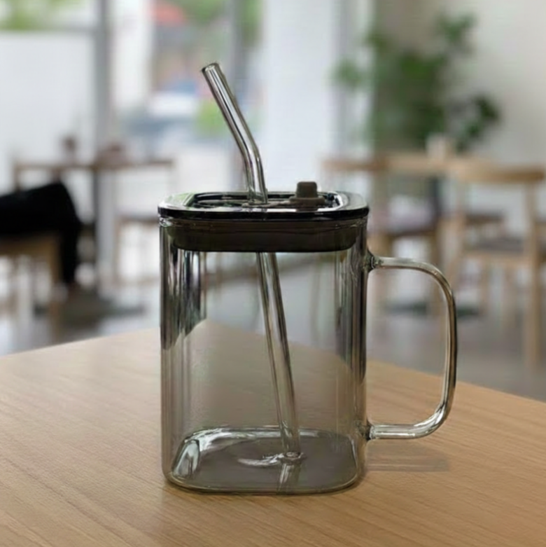 Enjoy refreshing beverages in style with this Mini Square Glass Tumbler & Straw with Airtight Lid — a modern and practical drinkware essential for everyday use. Made from high-quality transparent glass, this tumbler keeps drinks tasting fresh while beautifully showcasing layered beverages like iced coffee, juices, and fruit teas.It features a snug-fit plastic lid to help minimize spills and a reusable glass straw for smooth sipping. Sleek, minimal, and versatile, this tumbler is perfect for home, office desks, cafés, or gifting.