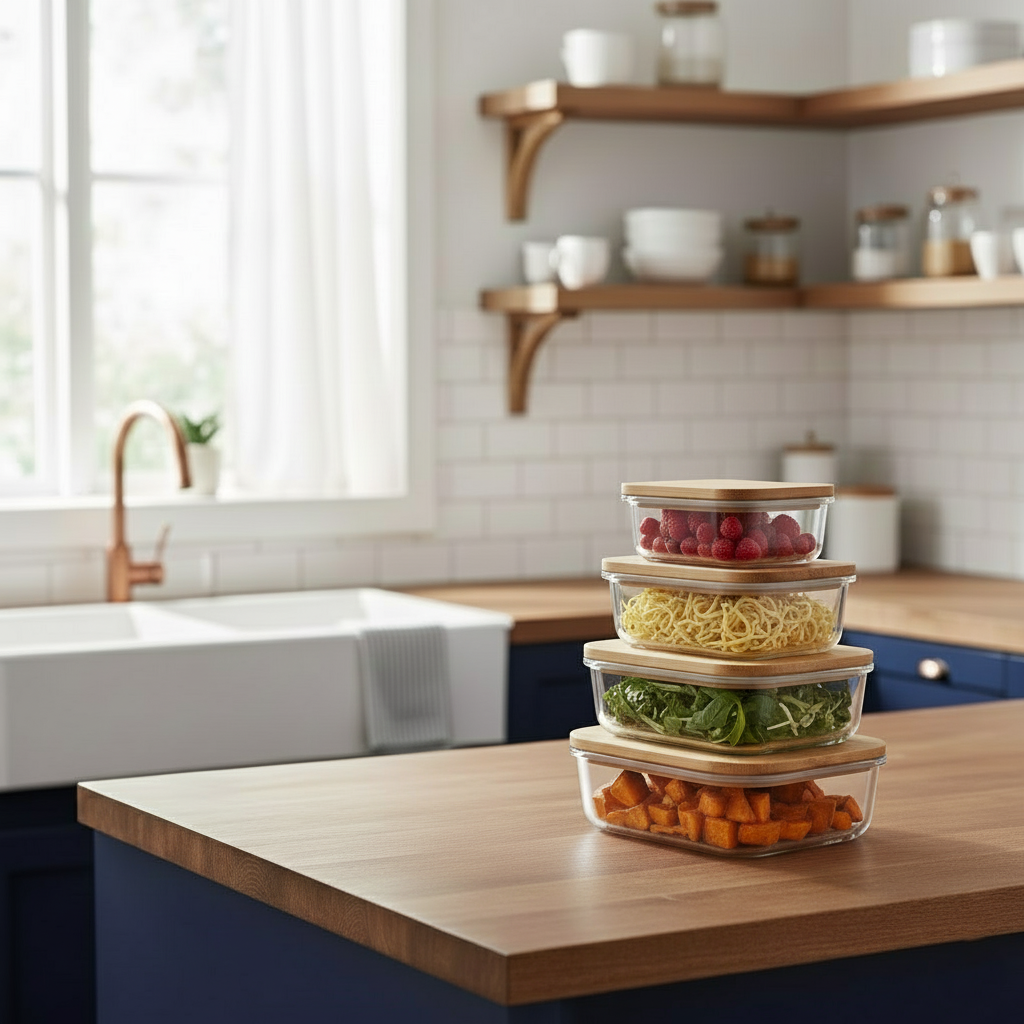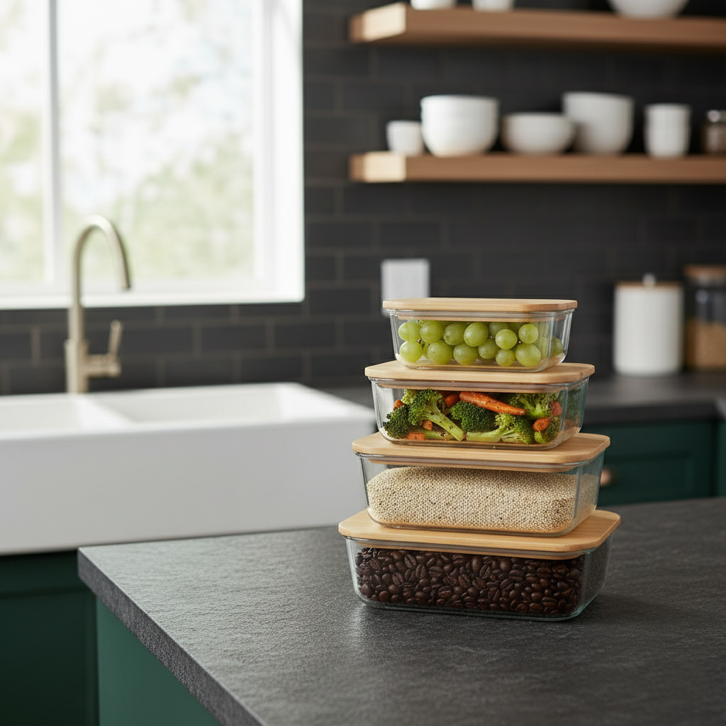 • Eco-Friendly Bamboo Lids – Sustainable lids with silicone seals for airtight, leak-proof storage.