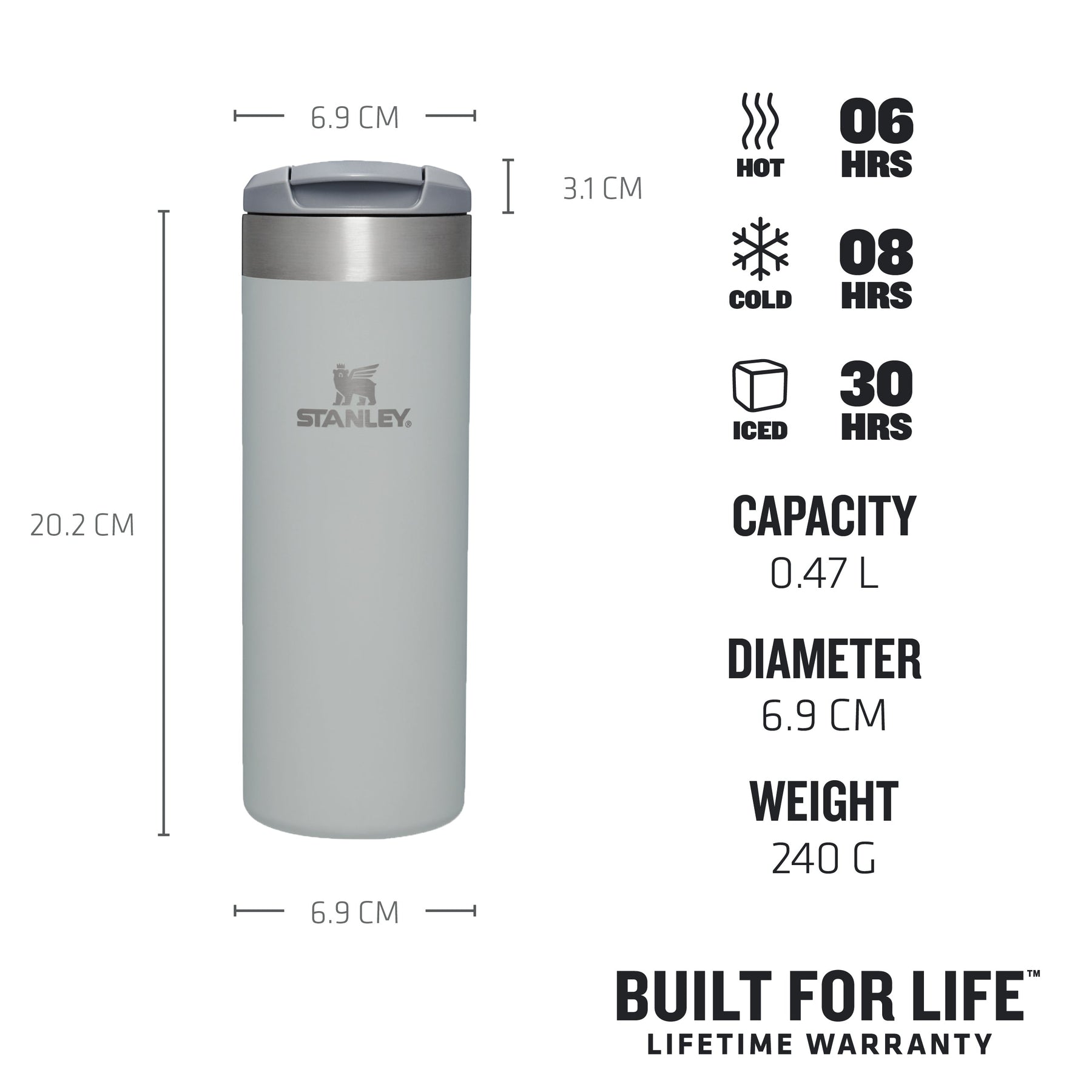 The product to support your commute and on-the-go lifestyle. As a part of our Transit collection, the AeroLight™ Transit Mug is designed to be lightweight without compromising your desired liquid temperature. Keeping your drinks hot for 6 hours, or cold for 8 hours. If you are on a morning commute or an evening hike this product has you covered whatever the weather. The Bottle is also Leakproof, with a locking, drink-through lid. This means you do not have to worry about spills as you throw your bottle in your bag and jump on your commuter train or begin your exercise. In addition, the AeroLight™ is dishwasher safe and BPA free, designed for easy cleaning. Our commuter-friendly Transit Mugs are 33% lighter than Stanley’s standard stainless-steel metal drinkware.