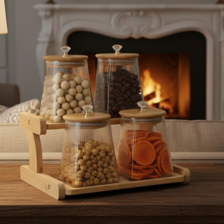 • Natural Wooden Lids: Airtight wooden lids help preserve freshness and prevent moisture