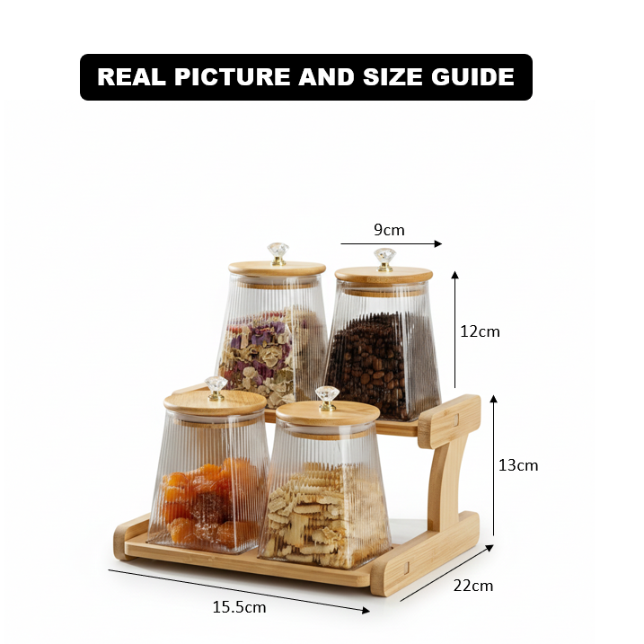 • Wooden Stand Included: Keeps all jars neatly arranged and easily accessible